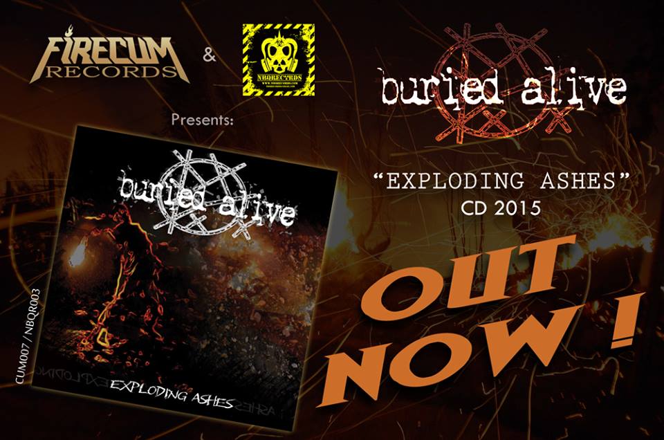 A Firecum Records em parceria com a NBQRecords e com distribuição oficial da Non Nobis Distro tem o prazer de anunciar para breve o lançamento do 3º album dos thrashers portuenses BURIED ALIVE, "Exploding Ashes".
